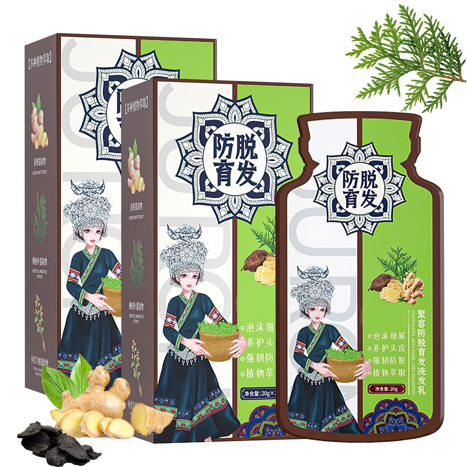Ginger Plant Extract Hair Shampoo - Anti-Hair Loss, Nourishing Formula for Stronger, Thicker Hair for Women and Men (2 Boxes)